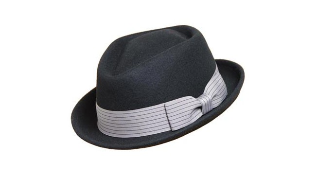 100%純羊毛的帽子,爵士禮帽,凹凸有致的帽頂,卷起的帽檐,條紋蝴蝶結(jié)時尚。