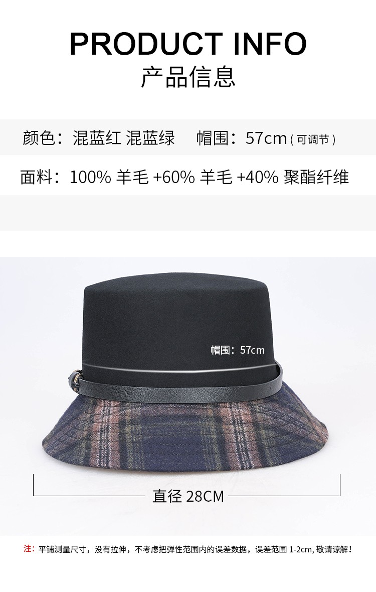 靈瓏小香風(fēng)格子漁夫帽女秋冬百搭帽子潮 英倫復(fù)古皮帶扣遮陽盆帽